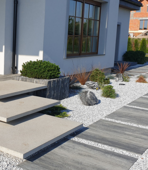 Solidne i estetyczne elementy do budowy schodów zewnętrznych. Trwałe i odporne na warunki atmosferyczne, idealnie komponują się z kostką brukową i płytami.